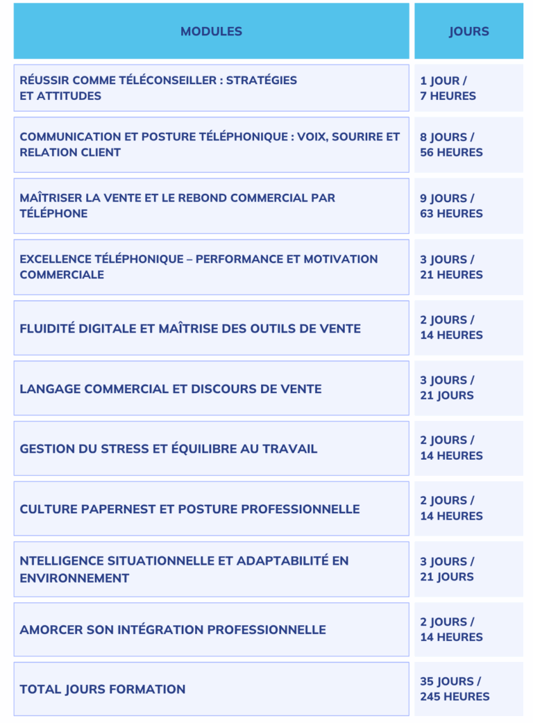 • Préparer les participants à exceller en tant que Téléconseiller en développant des compétences stratégiques et des attitudes professionnelles.
